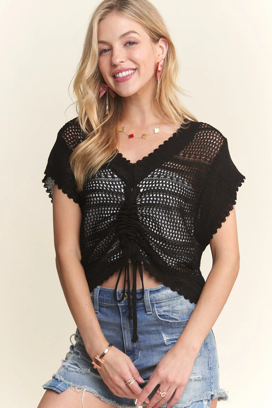 BiBi Mir Solid Raw Edge Neckline Thumb Opening Top
